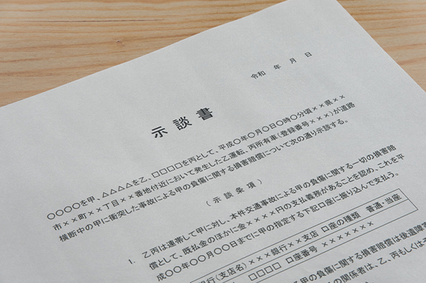 「示談」とは、私人間の紛争を民事裁判によらずに、当事者間による合意によって解決することをいいます。もしくは将来的に紛争が生じるおそれがある事項について、事前に予防する契約のことをいいます。「示談」という用語は刑事事件や交通事故などで利用されることが多く、民法上の「和解契約」と似ていますが、「和解契約」が相互に譲り合うことを前提とするものであるのに対して、犯罪や事故・不貞行為などの加害者だけが一方的に提示された条件に応じる場合も含む概念として使用されます。